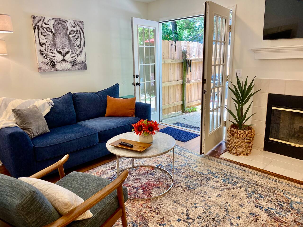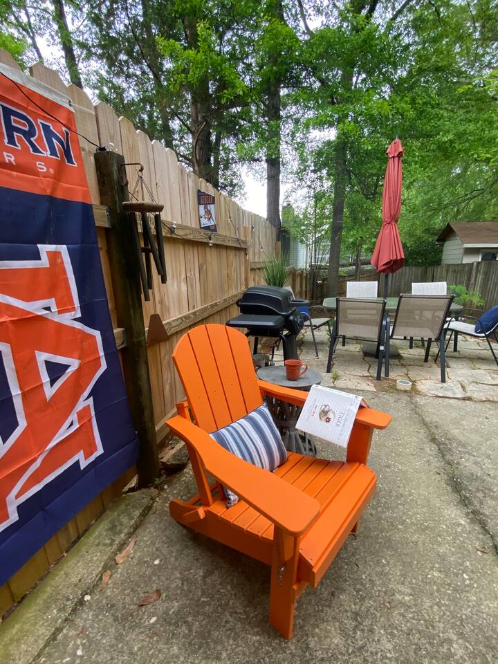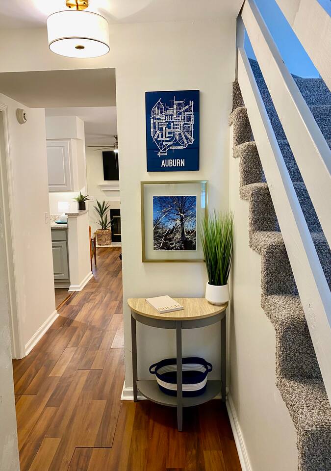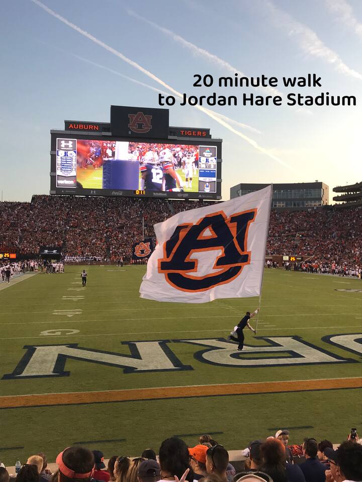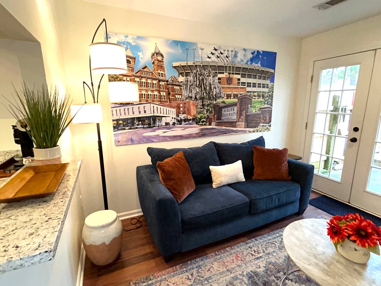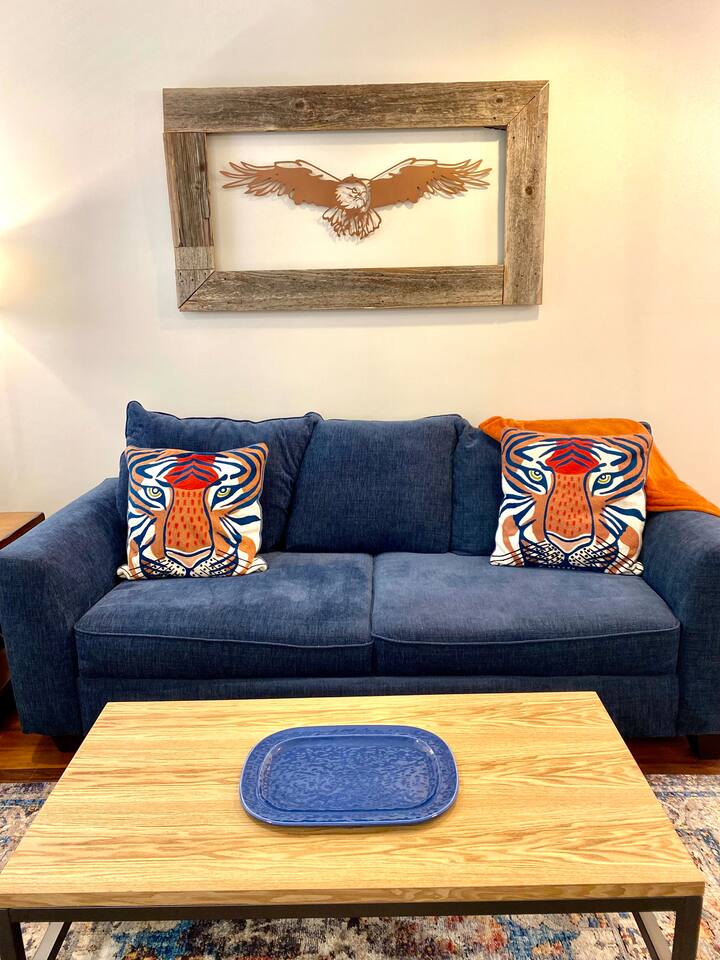 "Your place is absolutely awesome! Stayed in a bunch over the years and this one is now at the TOP of the list." -- Adam, March '25 Welcome to JET'S HANGAR- AU! We are Auburn parents who love to share our spacious, pet-friendly home away from home with you! Come home to the Plains. Jet's Hangar AU is 1300 sq ft that is perfect for families or small friend groups. Our getaway has 2 bedrooms, 2.5 baths, and a new sleeper sofa to host up to 8 people total. Location is key and guests can WALK to both Auburn University campus and the fun restaurants, bars, and shopping downtown. Our fenced backyard is perfect for grilling out, tailgating, or letting your family dog run. "The Hangar" makes life easy with your own driveway parking for 2, a washer and dryer, and a fully stocked kitchen. We try to provide for your every need, so you can just enjoy your college kids and all that the town of Auburn has to offer! THE SPACE *Arriving* The first thing you will see inside our 2 story entryway is your welcome book full of local info regarding restaurants, coffee shops and Auburn must-sees, a guest book to sign, original Auburn art, and access to our private 1 car garage. Also on the first floor is a half bath and full sized washer and dryer with detergent provided in case you'd like to do your student's laundry! *Eating* The fully renovated kitchen has stainless steel appliances, granite countertops, new sink, new lighting, and coffee (K cup and pot brewed) provided. All cooking utensils, pots, pans, and dishes are stocked in case you want to make a home-cooked meal for your student. We also provide wine glasses and kid-friendly plastic cups and dishes. The dining table seats 6 comfortably, and is adjacent to the living room with more seating. - Fully stocked kitchen - Keurig/ Coffee maker - Fridge in-door water dispenser - Crock pot - Blender - 6 top dining table *Lounging* Our open floor plan allows you to chat with anyone downstairs and the kitchen, living, and dining area are all connected. Kick back on our brand new couches and watch the game on the 53" TV. In the winter, cozy up with a fire in the fireplace with logs provided for you. The rest of the year, open up the double french doors to the shaded back porch and enjoy indoor/outdoor living! - 53" TV - Wood burning fireplace - Cozy AU blankets - Queen sleeper sofa - Auburn puzzles, playing cards, & books - Brand new furnishings 2024 *Sleeping* Both of our bedrooms are upstairs and each has its OWN full bath (1 attached to primary and 1 in the hall). The huge primary bedroom is 12 x 18 with a comfy King bed, dresser, and work desk area. Of course high speed internet, desk lighting, and spare plugs are positioned to make any work that must be done while on vacation as quick and painless as possible. You can store as many things as you need in the large walk-in closet complete with luggage rack and coat hangars. Stored in the closet is also a queen blow up mattress and bedding in case you have extra guests. Primary full bath is attached with 2 sinks and large mirrors to get ready for the big game. The second bedroom has a queen bed, plenty of pillows, and a closet with an extra tabletop fan. New blinds hang in both bedrooms, as do new ceiling fans. - All new furnishings, bedding - Ceiling fans - Extra tabletop fans - Extra blankets and pillows - 1 King bed, 1 Queen bed, and 1 Queen blow up mattress - Walk in closet with hangars and storage - Work space desk, lighting, wifi, plugs - Room darkening curtains - Smart TV in each bedroom *Necessities* The 2.5 baths each have new sinks and countertops (2024). Half bath is downstairs and both full baths are up. Plush white bath towels, hand towels, and even make-up cloths are provided. Each bath has hand soap, bath soap, shampoo, and conditioner. Make-up mirrors and hair dryers are stored also so a house full of girls can get ready at once. *Tailgating* Throw open the double french doors and enjoy our fenced back yard and patio. The outdoor dining table seats 6, with other lounge chairs provided. Grill a meal under the tree canopy and string lights and enjoy just being together. Jet's Hangar is uniquely close to campus and still quiet and peaceful outside. Bring your kid's pup from home, play the oversized outdoor games there, and celebrate all that is Auburn! *Exploring* Location! Location! Location! THIS is why we bought this townhouse! Jet's Hangar is close to everything Auburn! We WALK to everything on campus and downtown. - A Game Day weekend... Jordan-Hare Stadium... 1.5 mi Neville Arena... 1.6 mi Toomers Corner to celebrate the win.... .7 mi Quad Center for student tours because now you want to become an Auburn Tiger.... 1.2 mi And FREE parking to all these events because your car is at Jet's Hangar. No game day traffic to deal with here. NEVER worry about the dreaded on-campus parking ticket. - Getting Here... Atlanta airport... 99 mi and an easy drive on I85 all the way - Entertainment Downtown... Sky Bar... .8 mi famous Toomers Lemonade and Drug Store... .7 mi Hamiltons for dinner... .7 mi ALL the shopping... .7 mi Well Red Coffee and Bookstore... .3 mi - Other Entertainment... Tiger Town shopping in Opelika... 5.5 mi Historic Downtown Opelika... 8.3 mi Botanic Garden and Restaurant... 6.2 mi The Gogue Performing Arts Center featuring Broadway tours... 2.2 mi The Great Outdoors on the Plains... Lake Martin... 34 mi Robert Trent Jones Golf Trail and Grand National course... 7.9 mi Chewacla State Park, trails, and waterfall... 4.8 mi