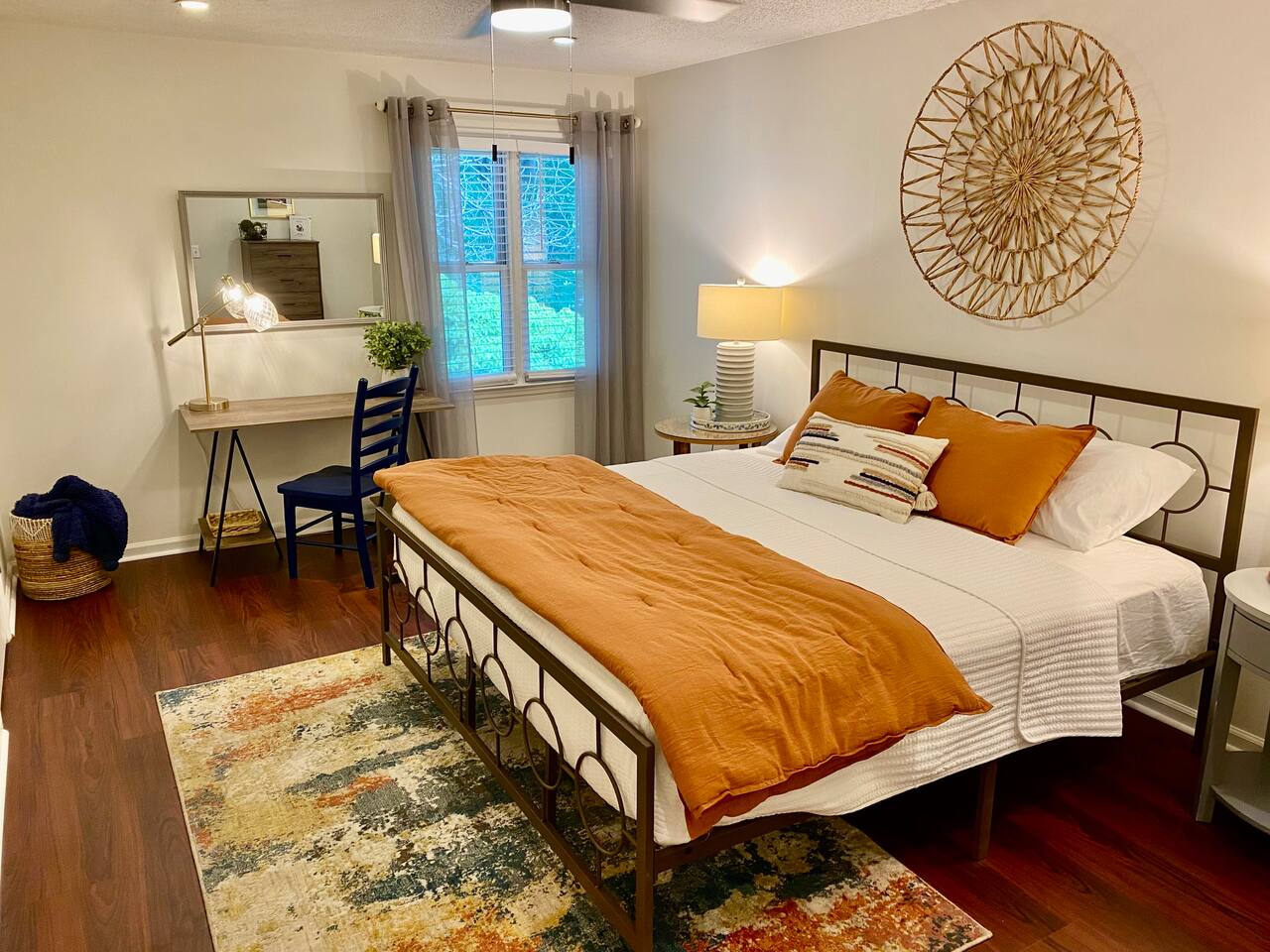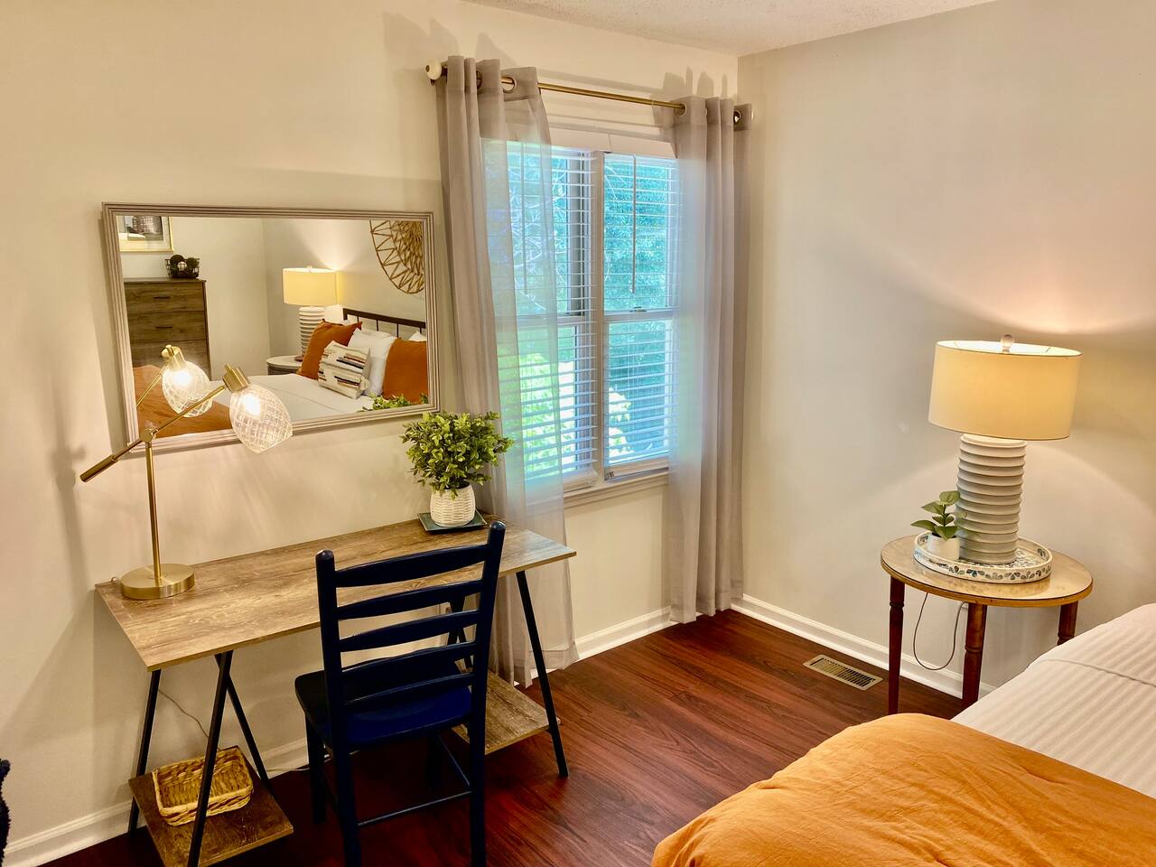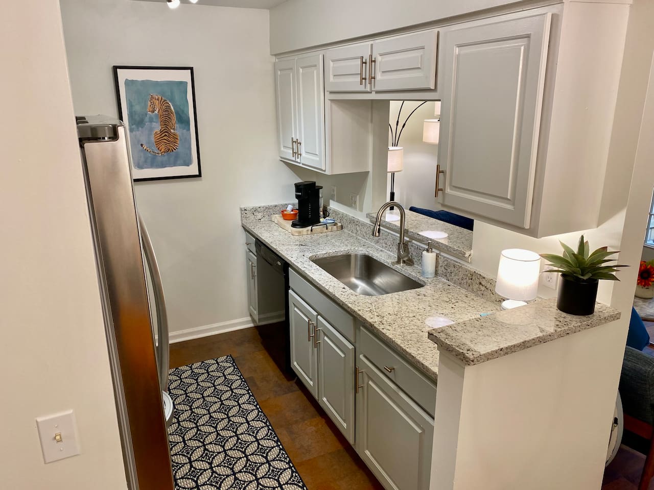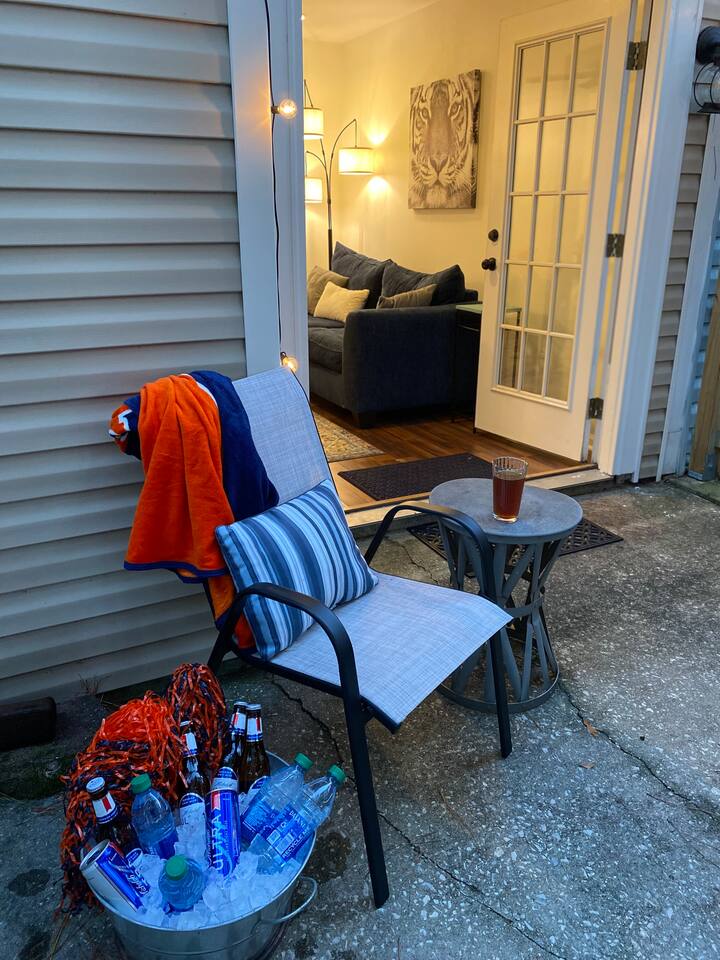 "Your place is absolutely awesome! Stayed in a bunch over the years and this one is now at the TOP of the list." -- Adam, March '25 Welcome to JET'S HANGAR- AU! We are Auburn parents who love to share our spacious, pet-friendly home away from home with you! Come home to the Plains. Jet's Hangar AU is 1300 sq ft that is perfect for families or small friend groups. Our getaway has 2 bedrooms, 2.5 baths, and a new sleeper sofa to host up to 8 people total. Location is key and guests can WALK to both Auburn University campus and the fun restaurants, bars, and shopping downtown. Our fenced backyard is perfect for grilling out, tailgating, or letting your family dog run. "The Hangar" makes life easy with your own driveway parking for 2, a washer and dryer, and a fully stocked kitchen. We try to provide for your every need, so you can just enjoy your college kids and all that the town of Auburn has to offer! THE SPACE *Arriving* The first thing you will see inside our 2 story entryway is your welcome book full of local info regarding restaurants, coffee shops and Auburn must-sees, a guest book to sign, original Auburn art, and access to our private 1 car garage. Also on the first floor is a half bath and full sized washer and dryer with detergent provided in case you'd like to do your student's laundry! *Eating* The fully renovated kitchen has stainless steel appliances, granite countertops, new sink, new lighting, and coffee (K cup and pot brewed) provided. All cooking utensils, pots, pans, and dishes are stocked in case you want to make a home-cooked meal for your student. We also provide wine glasses and kid-friendly plastic cups and dishes. The dining table seats 6 comfortably, and is adjacent to the living room with more seating. - Fully stocked kitchen - Keurig/ Coffee maker - Fridge in-door water dispenser - Crock pot - Blender - 6 top dining table *Lounging* Our open floor plan allows you to chat with anyone downstairs and the kitchen, living, and dining area are all connected. Kick back on our brand new couches and watch the game on the 53" TV. In the winter, cozy up with a fire in the fireplace with logs provided for you. The rest of the year, open up the double french doors to the shaded back porch and enjoy indoor/outdoor living! - 53" TV - Wood burning fireplace - Cozy AU blankets - Queen sleeper sofa - Auburn puzzles, playing cards, & books - Brand new furnishings 2024 *Sleeping* Both of our bedrooms are upstairs and each has its OWN full bath (1 attached to primary and 1 in the hall). The huge primary bedroom is 12 x 18 with a comfy King bed, dresser, and work desk area. Of course high speed internet, desk lighting, and spare plugs are positioned to make any work that must be done while on vacation as quick and painless as possible. You can store as many things as you need in the large walk-in closet complete with luggage rack and coat hangars. Stored in the closet is also a queen blow up mattress and bedding in case you have extra guests. Primary full bath is attached with 2 sinks and large mirrors to get ready for the big game. The second bedroom has a queen bed, plenty of pillows, and a closet with an extra tabletop fan. New blinds hang in both bedrooms, as do new ceiling fans. - All new furnishings, bedding - Ceiling fans - Extra tabletop fans - Extra blankets and pillows - 1 King bed, 1 Queen bed, and 1 Queen blow up mattress - Walk in closet with hangars and storage - Work space desk, lighting, wifi, plugs - Room darkening curtains - Smart TV in each bedroom *Necessities* The 2.5 baths each have new sinks and countertops (2024). Half bath is downstairs and both full baths are up. Plush white bath towels, hand towels, and even make-up cloths are provided. Each bath has hand soap, bath soap, shampoo, and conditioner. Make-up mirrors and hair dryers are stored also so a house full of girls can get ready at once. *Tailgating* Throw open the double french doors and enjoy our fenced back yard and patio. The outdoor dining table seats 6, with other lounge chairs provided. Grill a meal under the tree canopy and string lights and enjoy just being together. Jet's Hangar is uniquely close to campus and still quiet and peaceful outside. Bring your kid's pup from home, play the oversized outdoor games there, and celebrate all that is Auburn! *Exploring* Location! Location! Location! THIS is why we bought this townhouse! Jet's Hangar is close to everything Auburn! We WALK to everything on campus and downtown. - A Game Day weekend... Jordan-Hare Stadium... 1.5 mi Neville Arena... 1.6 mi Toomers Corner to celebrate the win.... .7 mi Quad Center for student tours because now you want to become an Auburn Tiger.... 1.2 mi And FREE parking to all these events because your car is at Jet's Hangar. No game day traffic to deal with here. NEVER worry about the dreaded on-campus parking ticket. - Getting Here... Atlanta airport... 99 mi and an easy drive on I85 all the way - Entertainment Downtown... Sky Bar... .8 mi famous Toomers Lemonade and Drug Store... .7 mi Hamiltons for dinner... .7 mi ALL the shopping... .7 mi Well Red Coffee and Bookstore... .3 mi - Other Entertainment... Tiger Town shopping in Opelika... 5.5 mi Historic Downtown Opelika... 8.3 mi Botanic Garden and Restaurant... 6.2 mi The Gogue Performing Arts Center featuring Broadway tours... 2.2 mi The Great Outdoors on the Plains... Lake Martin... 34 mi Robert Trent Jones Golf Trail and Grand National course... 7.9 mi Chewacla State Park, trails, and waterfall... 4.8 mi